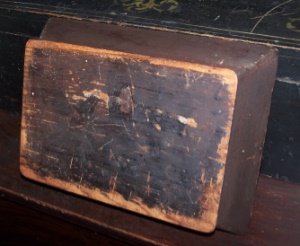 EARLY PA. KNIFE BOX IN OLD DRY MADDER BROWN PAINT