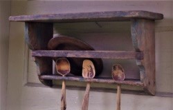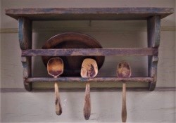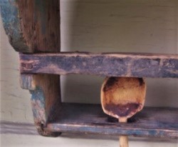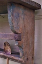 EARLY PRIMITIVE SHELF WITH SPOON RACK - TRACES OF BLUE PAINT