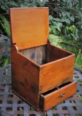 AUTHENTIC EARLY HANGING PENNSYLVANIA SALT BOX WITH DIVIDED SPICE DRAWER