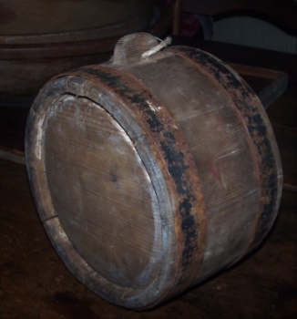 RARE EARLY WOODEN STAVED BARREL CANTEEN