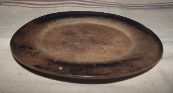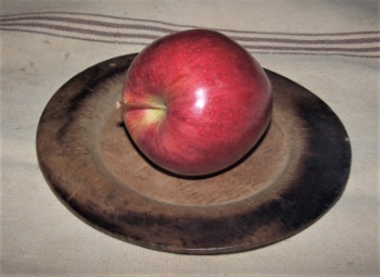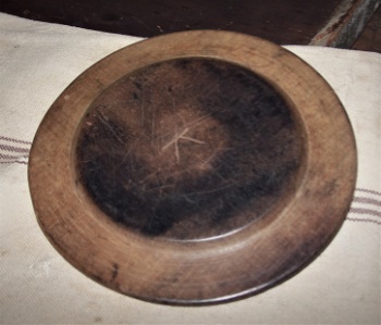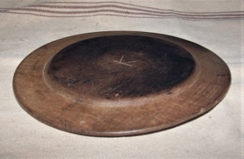 The letter K was incised into the underside of the plate which represents the makers name and/or the person for whom it was made. It is in an excellent state of preservation, with nominal wear developed from age. The color is a rich mellow creamy tan with color variations condusive with age. Some darkening, as shown. The early patina is absolutely original and is simply beautiful. The surface of this piece is very interesting and eye catching.
